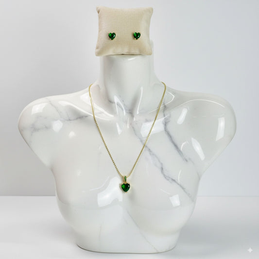 AHORRAS $49.000Corazón de Esmeralda – Set de Cadena y Aretes – Edición Especial
