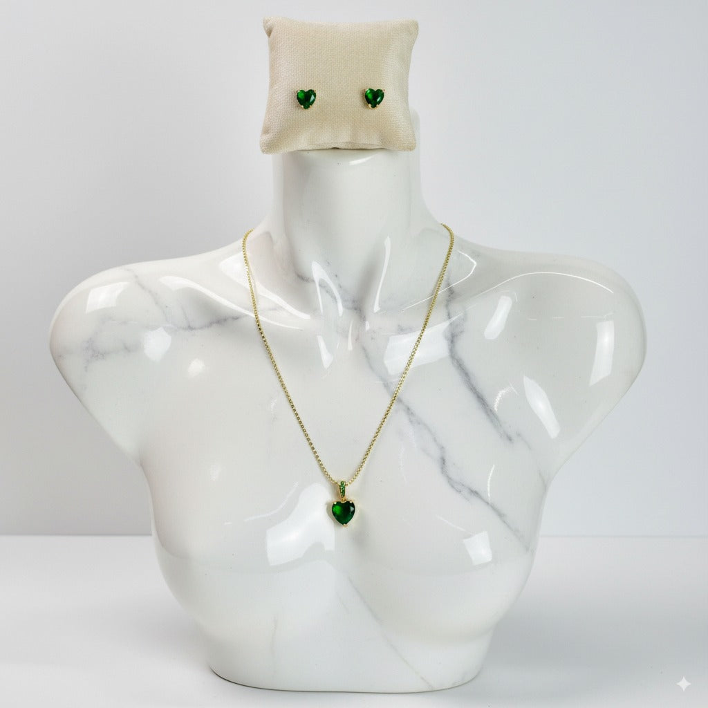 Corazón de Esmeralda – Set de Cadena y Aretes – Edición Especial
