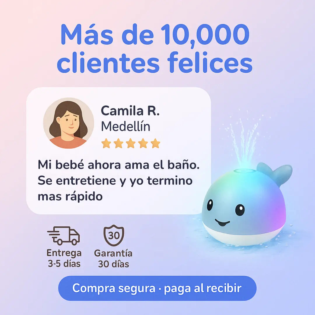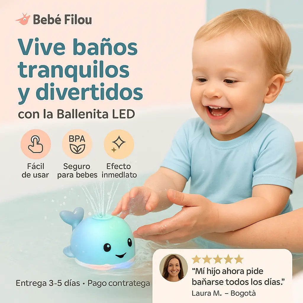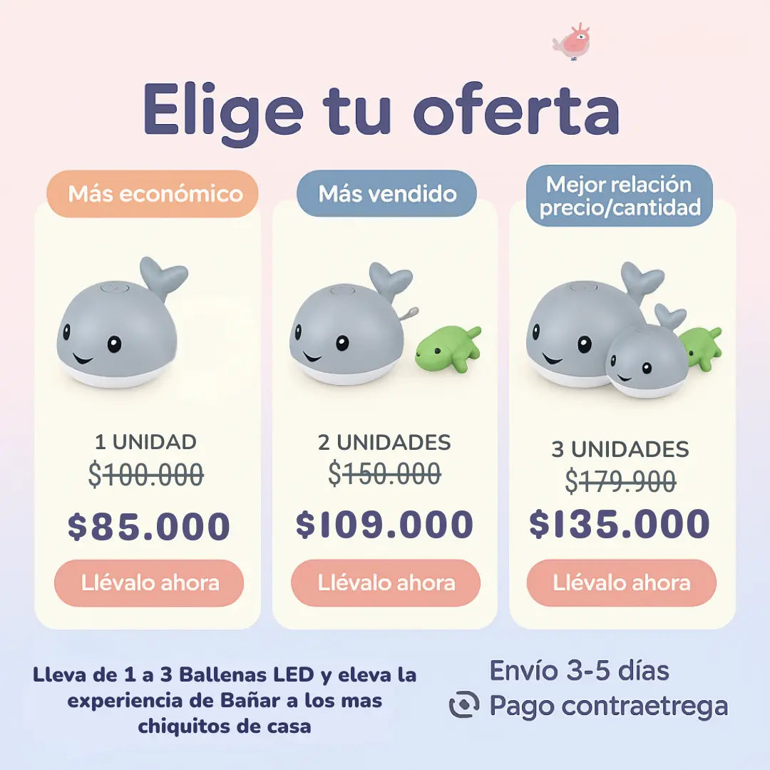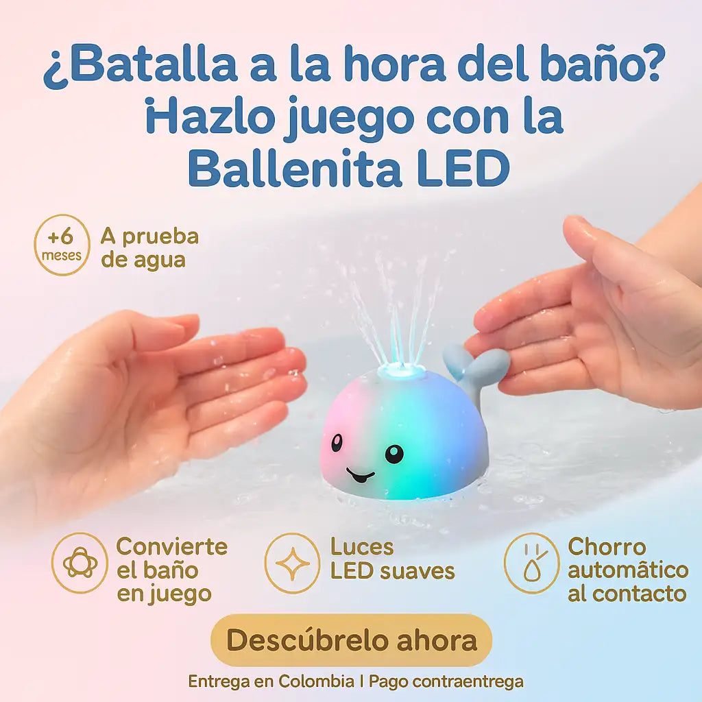 Ballenita LED - Genera Momentos Agradables Con tu Bebe en la Ducha o Piscina - 40%OFF Stock Limitado