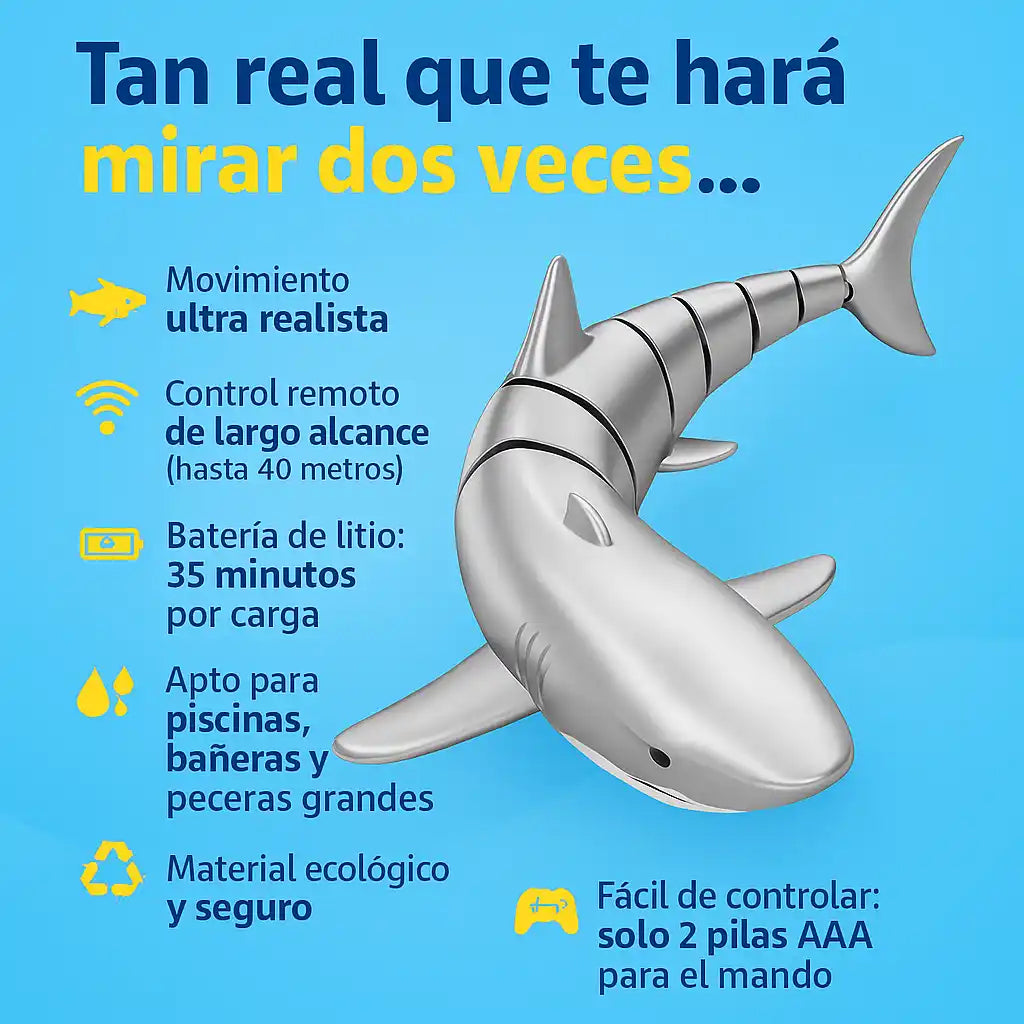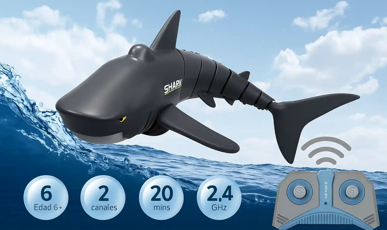 Tiburoncín - Tiburon a Control Remoto con Luz LED y Movimientos realistas - Oferta Por Esta Semana